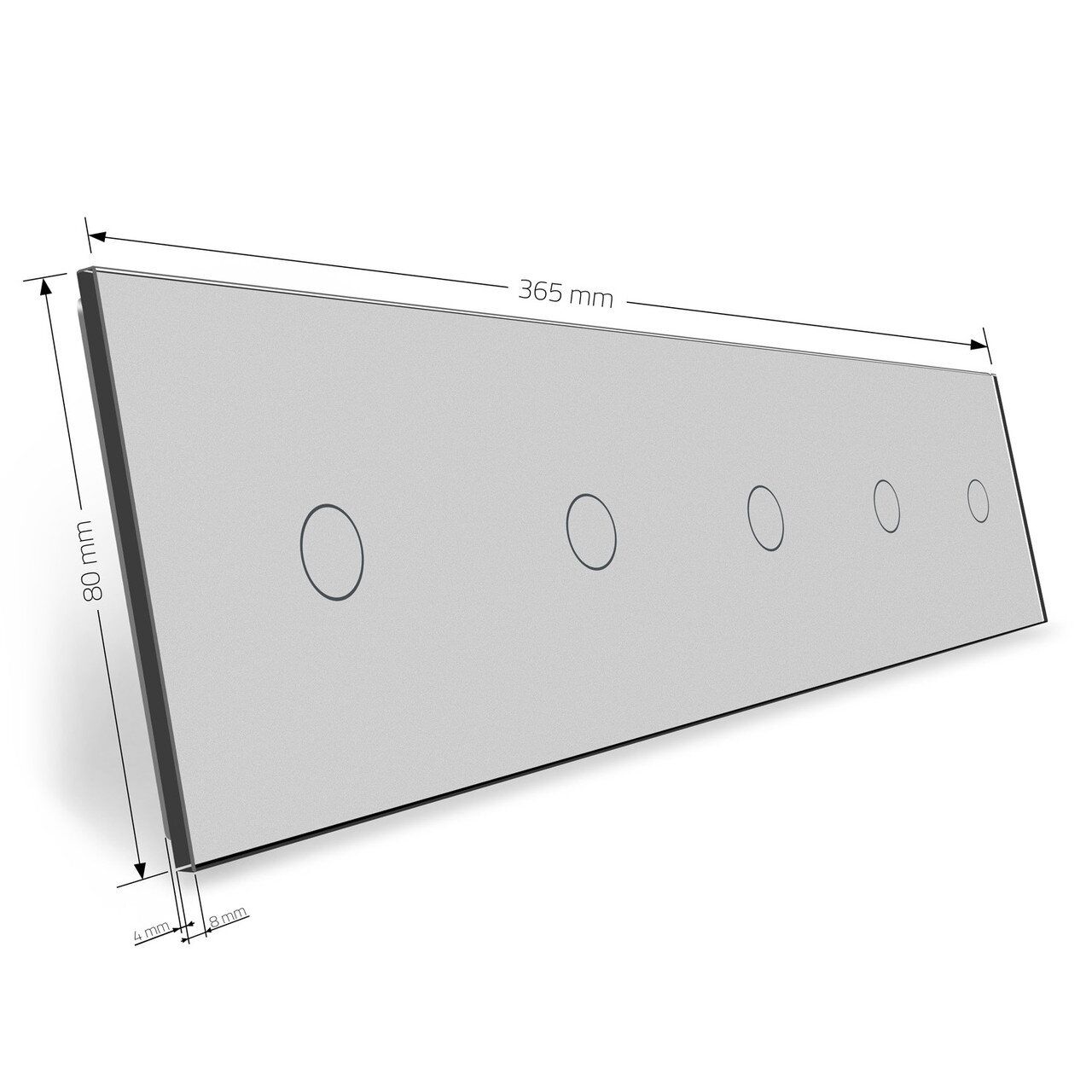 Скляна панель із загартованого скла призначена для сенсорних модулів Livolo. Даний варіант панелі підходить для монтажу 5-ти сенсорних вимикачів для управління 5 (1+1+1+1+1) зонами освітлення.