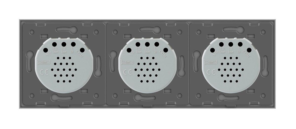 Сенсорний вимикач 4 сенсора (1-1-2) скло Livolo LMVL-C701/C701/C702-15 сірий