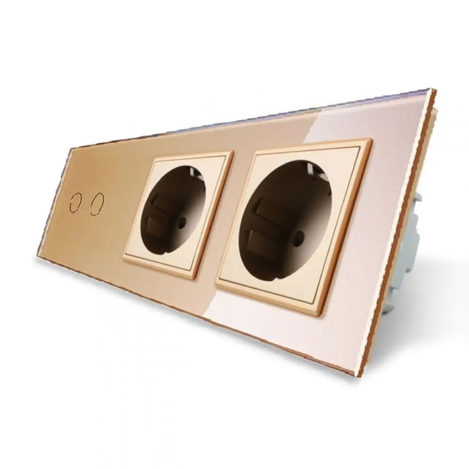 Сенсорний ZigBee вимикач 2 сенсора 2 розетки Livolo LMVL-C702Z/C7C2EU-13 золото скло
