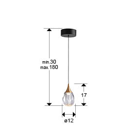 Одноламповий світильник з матового чорного металу з мідними деталями. Литі прозорі акрилові абажури. Регульована висота. Світлодіод 6 Вт, 3000K.
