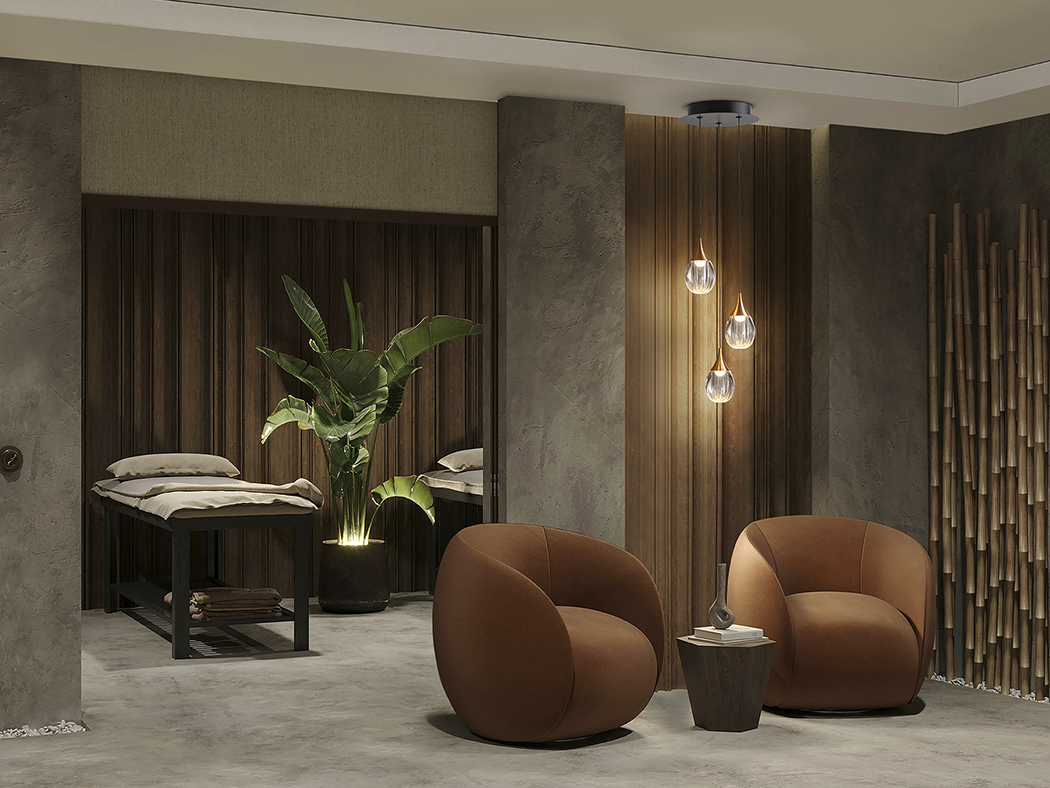 Триламповий світильник з матового чорного металу з мідними деталями. Литі прозорі акрилові абажури. Регульована висота. Світлодіодний світильник 18 Вт, 639 лм, 3000 К.