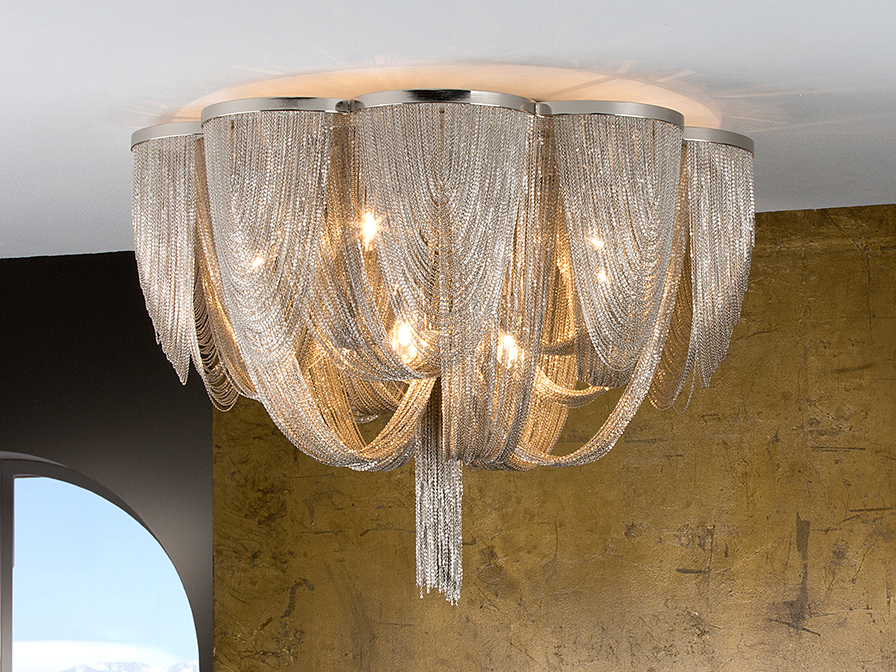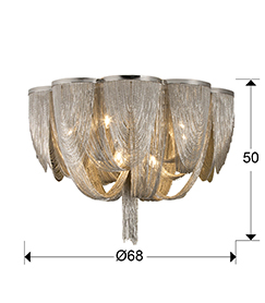 Стельовий світильник на 10 лампочок, що складається з тонких металевих ланцюжків з нікельованим покриттям, що утворюють корпус лампи. З РЕЖИМОМ ДИМУВАННЯ. Пульт дистанційного керування в комплекті.
